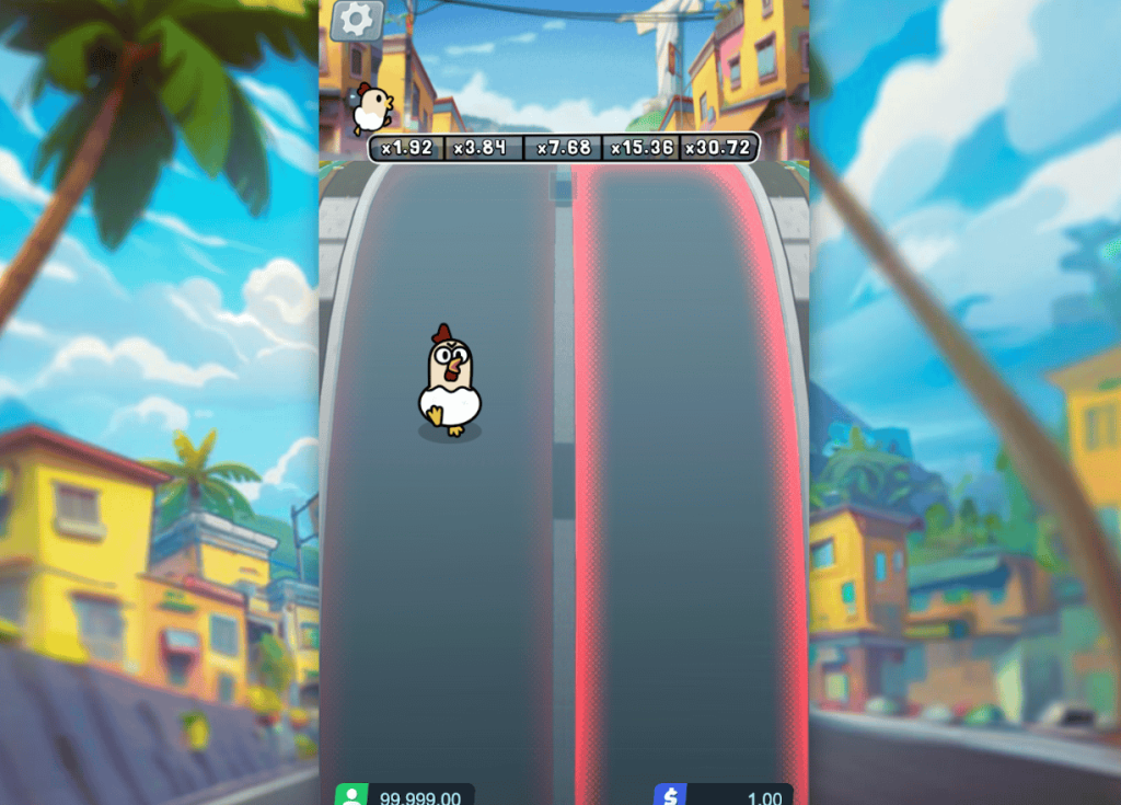 Chicky Run is a vibrant chicken gambling game, which is available at dozens of crypto casinos. A chicken runs down a steep road in Rio de Janeiro, trying to dodge oncoming traffic.